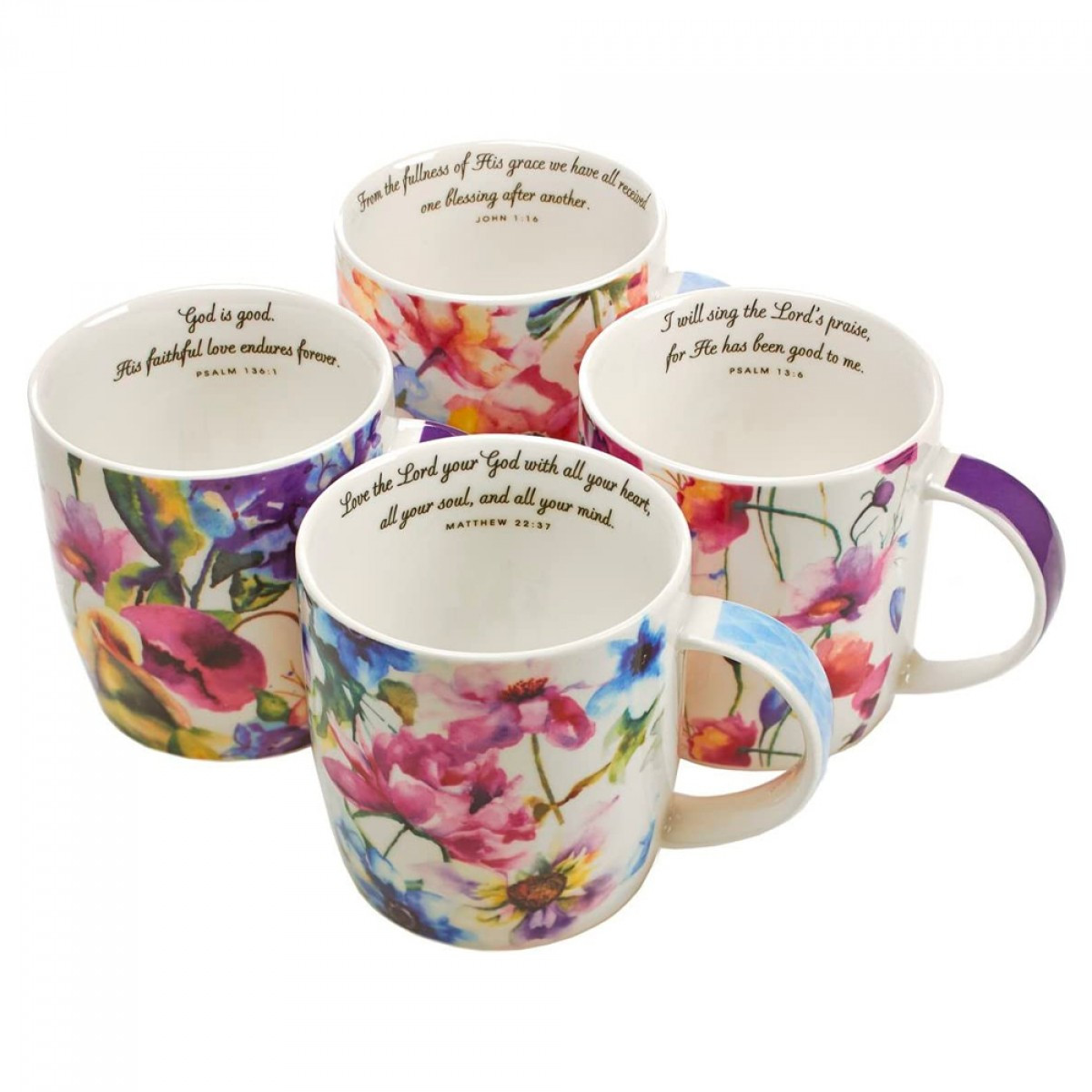 彩色花卉陶瓷茶杯套裝 愛的種子花園綻放設計 聖經經文茶杯套裝 4個盒裝茶杯